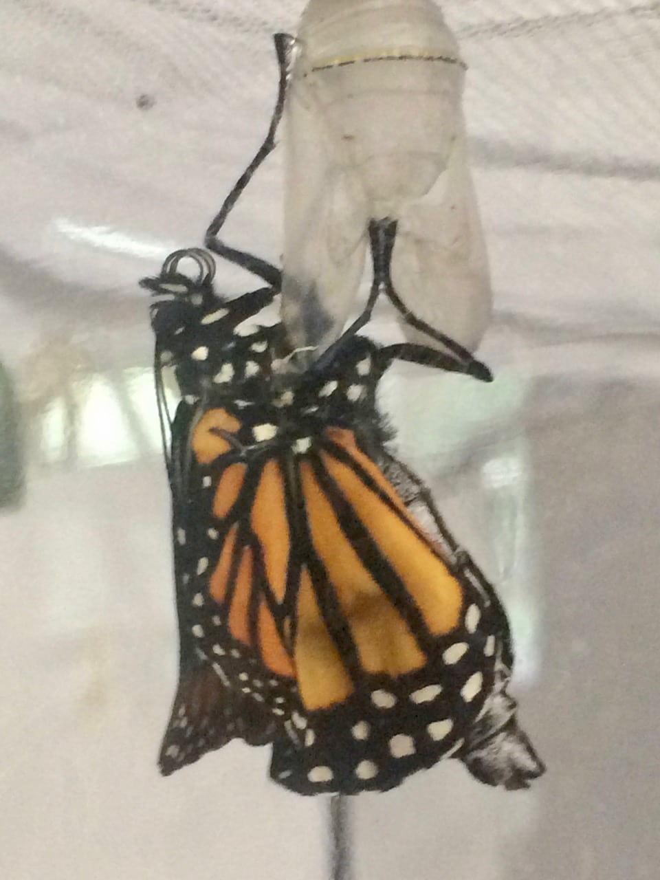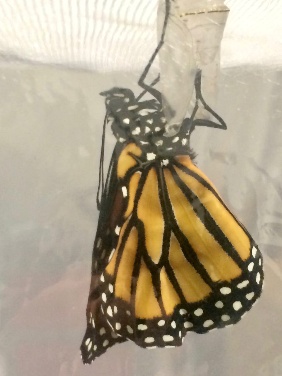 We released them all and wished them safe journeys to Mexico. To capture one emerging from the chrysalis, I set up my work station in the garage when I knew the time was close to make sure I didn't miss it. Check out the video below to see a monarch emerge from her chrysalis!
